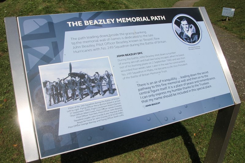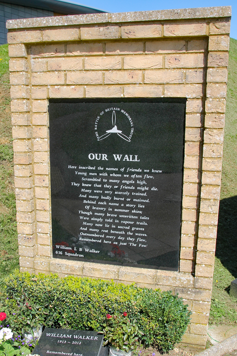Die „Christopher Foxley-Norris Memorial Wall“ ist nach dem verstorbenen Air Chief Marshal Sir Christopher Foxley-Norris benannt, einem Hurricane-Kampfpiloten im Jahr 1940. Er war der erste Präsident des Battle of Britain Memorial Trust und zusammen mit Lady Foxley-Norris, stellte er die Mittel bereit, die den Bau der Mauer ermöglichten. Die Memorial Wall wurde im Juli 2005 vom Prinz of Kent enthüllt. Auf der Wand sind die Namen aller Flugzeugbesatzungen aufgeführt, von denen bekannt ist, dass sie während der Luftschlacht um England im Jahr 1940 mindestens einen Einsatz mit einem Geschwader oder einer Einheit der Royal Air Force geflogen sind. Am linken Ende der Wand befindet sich ein Sockel, in den ein Gedicht des Veteranen William Walker AE eingelassen ist, der im Oktober 2012 im Alter von 99 Jahren starb. Das Gedicht „Our Wall“ bezieht sich auf eben dieses Denkmal.