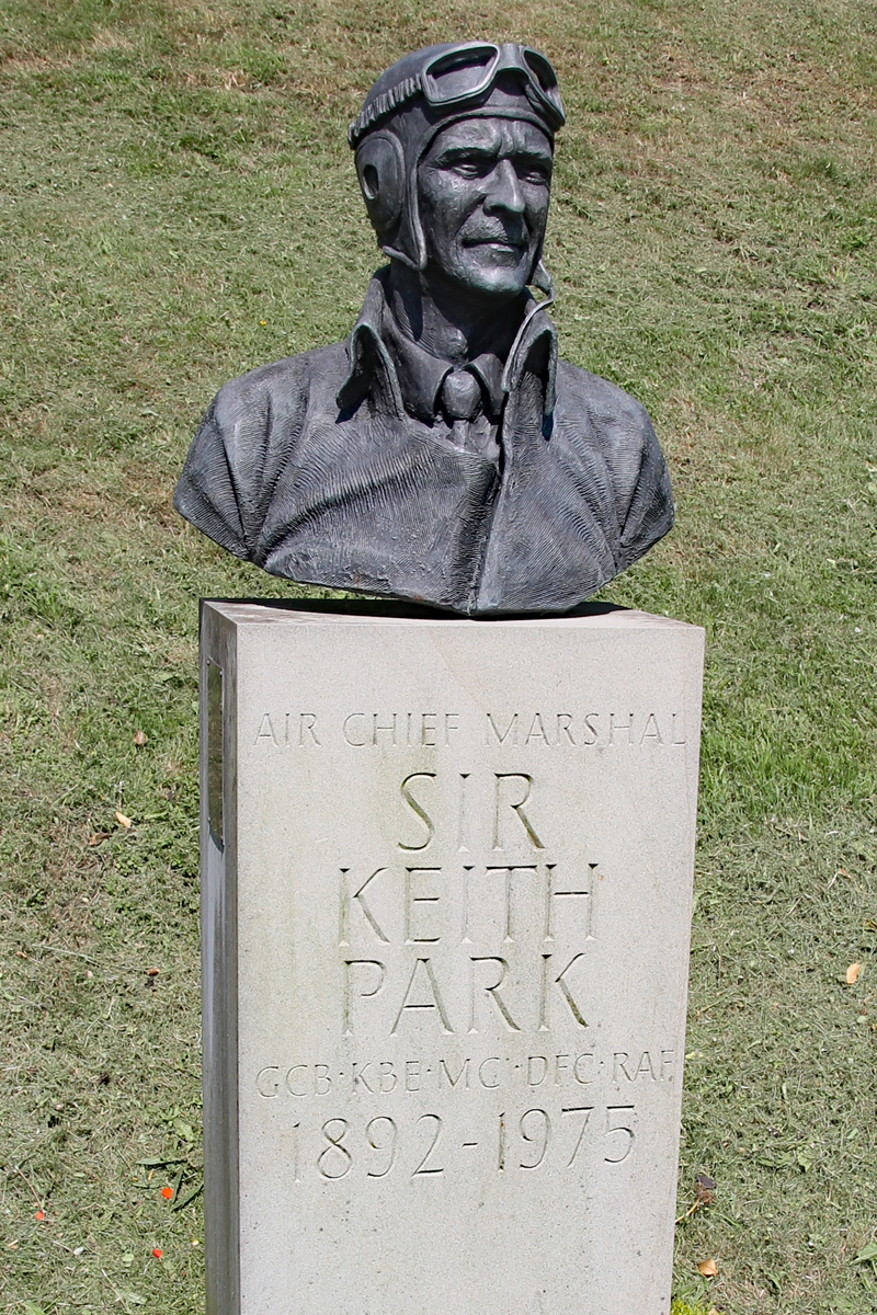 Sir Keith Park Büste – Sir Keith, der das No 11 Group Fighter Command der RAF befehligte – die Staffeln, die die Hauptlast der Luftschlacht um England trugen – gilt als einer der Männer, deren Führung und Vision dazu beitrugen, den Sieg der deutschen Luftwaffe zu verhindern.