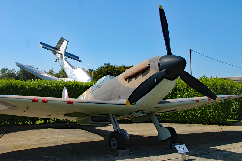 Die Nachbildung der Supermarine Spitfire Mk1 stellt das Flugzeug YT-J mit der Seriennummer R6675 dar, welches der Flugoffizier Jeffery Quill OBE AFC während seiner kurzen Einsatzzeit beim Geschwader Nr. 65 vom 6. bis 24. August 1940 am häufigsten flog.