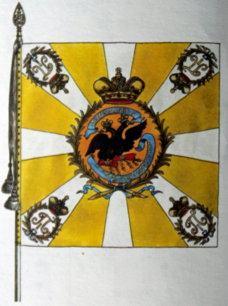 Naturlich gab es bei all diesen Vorschriften auch zahlreiche Ausnahmen. So bekam das Pawlow Grenadier-Regiment 1813 neue Fahnen, jedoch 3 Fahnen pro Bataillon (für das 2. und 3., welche im Feld standen), wobei jede Füsilier-Kompanie ein Fahne erhielt.