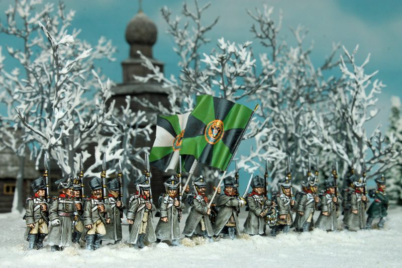 Nach den ersten Einheiten der Franzosen für mein Projekt „Die Eisfestung“ geht es in dieser Woche weiter mit den ersten russischen Einheiten. Insgesamt sollen es drei „Kolonnen“ werden, wobei jede Kolonne aus Infanterie, Kavallerie und Artillerie bestehen wird. Um nicht immer die gleichen Einheiten-Typen für jede Kolonne verwenden zu müssen und mehr Optionen im Szenario zu haben, werde ich eine Kolonnen-Formation als eine Art Elite-Kolonne aufbauen, die dann auch Grenadier-Bataillone enthält. Eine andere Kolonne bekommt einen hohen Anteil an Miliz-Truppen, während die dritte Kolonne aus reinen Linien-Truppen bestehen wird.