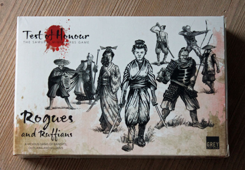 In Vorbereitung auf die Red Lion Con, wo wir mit einem Teil des TACTICA-Teams (Markus, Hans und ich) eine Test of Honour Präsentation anbieten werden, habe ich auch ein paar neue Figuren bemalt. Ich hatte mir die Box – Rogues and Ruffians vorgenommen, die einen Grundstock für eine Fraktion von Banditen und Ronins bilden soll.