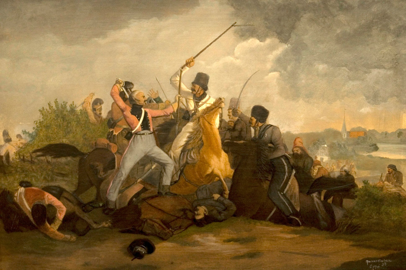 General Pahlen, der die Pistolenschüsse gehört hatte, ließ sofort das Husarenregiment Isum in Aktion treten. Pahlen selbst hatte kaum Zeit, sich anzuziehen, bestieg in Unterhosen sein Pferd und kam Löwenstein mit dem Regiment Rigaer Dragoner zu Hilfe. Es begann zu dämmern, und als die dänischen Reiter frische Truppen vor sich sahen, machten sie Halt und bereiteten sich auf den Kampf vor. General Pahlen ließ sofort Oberst Graf Timann mit den Isum Husaren angreifen. Er ritt die Dänen frontal an. Bei dem folgenden Kampfgetümmel fiel Oberst Boncke Bönnichsens (Bonniche Bonnichsen), der stellvertretende Kommandeur der Jütland-Dragoner. Dieser konnte wegen seines erschöpften Pferdes am Ende der Schlacht nicht fliehen und lehnte das Angebot eines Trompeters ab, dessen Pferd für die Flucht zu nutzen. Neben Oberst Bönnichsens wurden außerdem die dänischen Leutnants Hobe und Ursin schwer verwundet. Bönnichsens wurde nach dem Gefecht auf dem Friedhof der Sieker Kirche von den Männern des Freikorps Lützow begraben, welches mit einem Infanterie-Bataillon während des Gefechts hinter der Kirche in Reserve gestanden hatten.