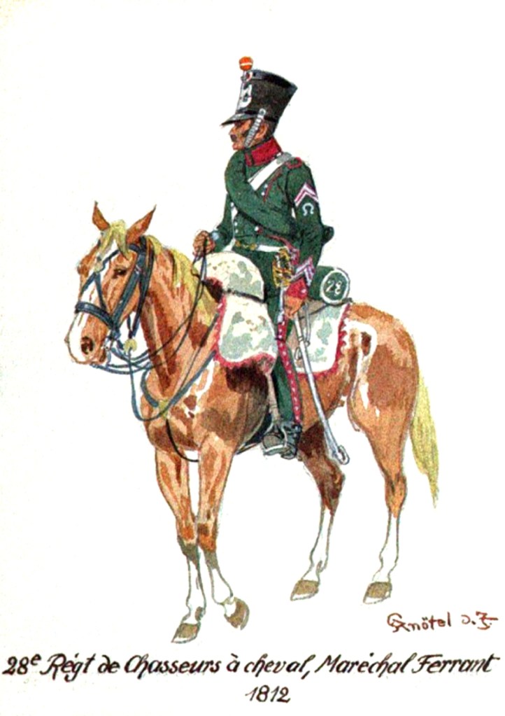 - 28. Reitendes Jäger Regiment (2 Schwadronen) – Oberst Eleonore-Ambroise Courtier