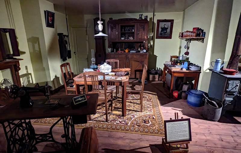 Einblick in ein typisches Heim der Normandie in den 30er Jahren. Das Sideboard stammt vom Möbelschreiner aus Saint-Hilaire-Petitville, der Tisch von einem Schreiner aus Avranches.