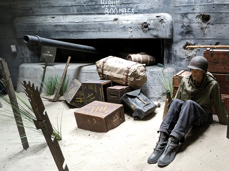 Im Aussgelände wurde ein Abschnitt eines Strandes des D-Day und seiner deutschen Verteidigungsanlagen nachbildet. Das Ganze stellt einen Frontabschnitts dar, als die ersten LCVPs der 4. Infanteriedivision Utah Beach erreichten.