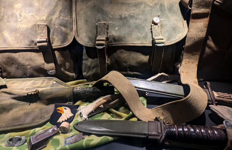Neben den Waffen trugen die US-Fallschirmjäger eine Vielzahl weiterer Ausrüstungsgegenstände, um im Notfall bei ihrem Einsatz hinter den feindlichen Linien einen gewissen Zeitraum unabhängig operieren zu können. Dazu gehörten nicht nur Karten und Kompass, sondern auch französisches Geld und ein Wörterbuch.
