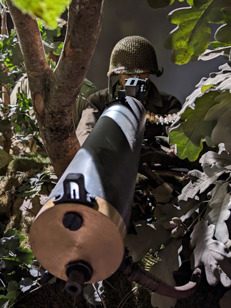 Eine US-Mörserstellung mit einem 81mm M1-Mortar. Gerade in der unübsichtlichen und unwegsamen Heckenlandschaft der Normandie, war der Mörser oft die erste Wahl, wenn es um Feuerunterstützung der Infanterie ging.