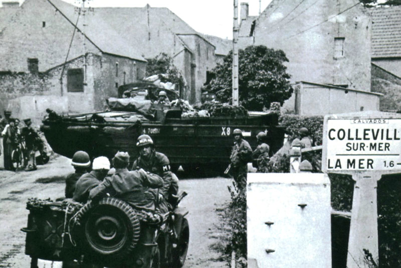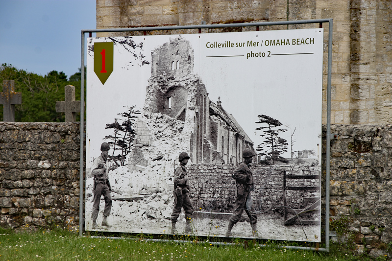 Am 6. Juni 1944 wurde die Kirche von Colleville-sur-Mer (Eglise Notre-Dame de l’Assomption de Colleville-sur-Mer) bei der Landung durch einen amerikanischen Zerstörer teilweise zerstört, insbesondere der Glockenturm, da dort sieben deutsche Soldaten stationiert waren, die das Ufer beobachteten und Zieldaten an die Artillerie-Batterien übermittelten. Der Wiederaufbau der Kirche wird von 1946 bis 1951 durchgeführt, wodurch sie wieder ihr Aussehen aus der Vorkriegszeit erhielt.