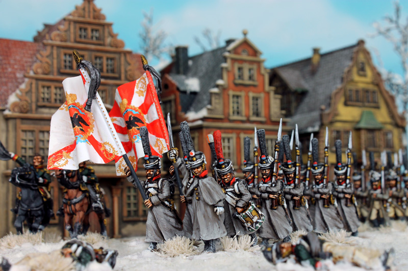 Ich hoffe, dass ich die komplette zweite russische Kolonne bis zum Beginn meines Urlaubes fertigstellen kann, dazu fehlen noch eine halbe Grenadier-Einheit, eine Einheit Linien-Infanterie und eine Einheit Jäger. Nach meinem Sommerurlaub geht es dann langsam an den Bau der Geländeplatte und an die dritte russische Kolonne.