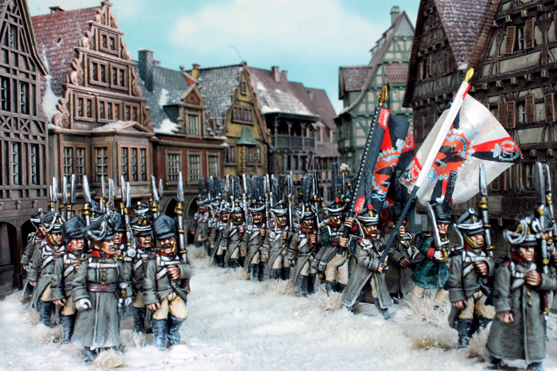 Ich hoffe, dass ich die komplette zweite russische Kolonne bis zum Beginn meines Urlaubes fertigstellen kann, dazu fehlen noch eine halbe Grenadier-Einheit, eine Einheit Linien-Infanterie und eine Einheit Jäger. Nach meinem Sommerurlaub geht es dann langsam an den Bau der Geländeplatte und an die dritte russische Kolonne.