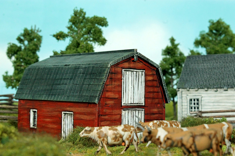 Bei den Gebäuden handelt es sich dieses Mal nicht ausschließlich um die Gebäude von 3D Print Terrain (Jens Najewitz), sondern auch um zwei Gebäude von 4Ground, also lasergeschnittene Steckbausätze. Die Gebäude sind im Maßstab 15 mm und passen so einigermaßen zu den von mir verwendeten, gedruckten Gebäuden. Die Bausätze sind ganz OK, allerdings ist die Oberfläche nicht so schön strukturiert und man muss viel durch die Bemalung darstellen. Die größere Scheune stellt die Scheune der McPherson Farm dar und ist auch der Grund, warum ich den 4Ground Bausatz verwendet habe (diese Scheune gibt es nicht von 3D Print Terrain). Das dritte Gebäude ist wieder von 3D Print Terrain und stellt das Wohnhaus der Klingel Farm dar. In Sachen „Gebäude“ bin ich jetzt einigermaßen versorgt, schön wäre aber noch das Wohnhaus der McPherson Farm sowie einiges an Zäunen sowie ein paar Waldstücke. Es gibt also noch das eine oder andere zu tun.