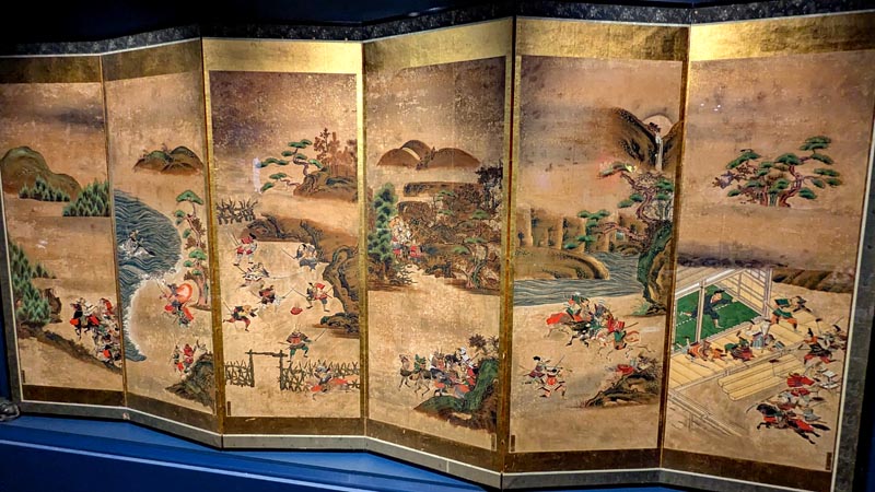 Teegeräte aus der Zeit von Sen no Rikyū (1522–1591): Die Teekunst war eng mit der Samurai-Kultur verbunden und bot einen Kontrapunkt zur kriegerischen Seite. Exponate aus der Zeit dieses einflussreichen Teemeisters sind von großer kultureller Bedeutung. Das Museum inszeniert die Teezeremonie auch multimedial.