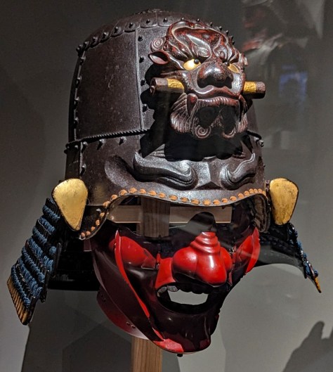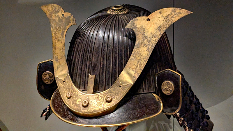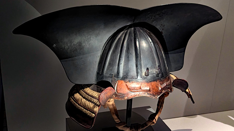 Bamen-Helm (Edo-Zeit, 17. Jahrhundert): Helme waren oft individuell gestaltet und dienten nicht nur dem Schutz, sondern auch der Einschüchterung und der Darstellung des Status. Ein Bamen-Helm (Pferdegesichtshelm) ist ein ungewöhnliches Beispiel.