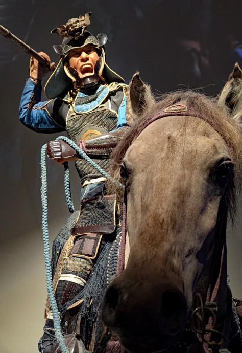 Das originale Nō-Theater und Teehaus (aus Japan importiert): Obwohl keine einzelnen Ausstellungsstücke im engeren Sinne, sind diese originalgetreu nachgebauten und importierten Strukturen selbst spektakuläre Exponate. Sie bieten eine einzigartige Kulisse für die holografischen Aufführungen von Nō-Theaterstücken und Taiko-Trommelvorführungen, die ein immersives kulturelles Erlebnis schaffen und die tiefen Verbindungen der Samurai zur japanischen Kunst und Spiritualität verdeutlichen.