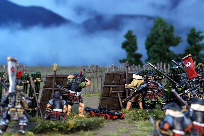 Die dritte Präsentation wird sich mit der Erstürmung der Toranlage einer großen japanischen Burg beschäftigen. Vasa will hierfür sein „altes“ Regelwerk ein wenig umschreiben und ein kooperatives Szenario entwickeln, bei dem die Spieler gemeinsam versuchen müssen, in die Burg einzudringen. Die Figuren, das Gelände und die Belagerungsgeräte sind bereits in Arbeit. Der größte Teil der Figuren ist bemalt und so werden wir uns im Winter auf die Bemalung der Burg und die Gestaltung der Geländeplatte stürzen.