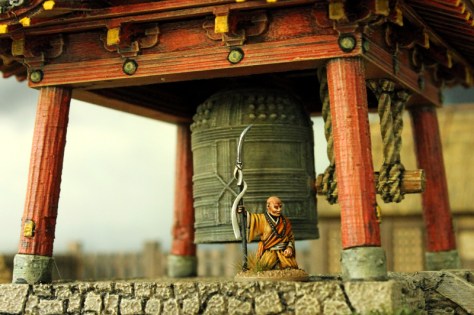 Schon vor einigen Monden hatte ich einen japanischen Tempel bemalt, der jetzt das Herzstück der ersten Spielplatte wird. Neben dem bereits bemalten Tempeltor, der Maueranlage, die einen kleinen Hof umgibt, sowie einem Gebäude mit Tempelglocke, wird jetzt auch eine 5-stöckige Pagode sowie kleine Schreine und diverses Zubehör hinzukommen. Gunnar hat schon seinen 3D-Drucker angeworfen und zwei Kisten mit Geländeteilen produziert. Auf der Spielplatte werden Mönche, Ninja und Ikko-Ikki eingesetzt, die aber zum größten Teil schon von Vasa und mir bemalt wurden. Die Szenarien sind bereits grob geplant und sollen mit dem Regelwerk „Test of Honour“ gespielt werden.