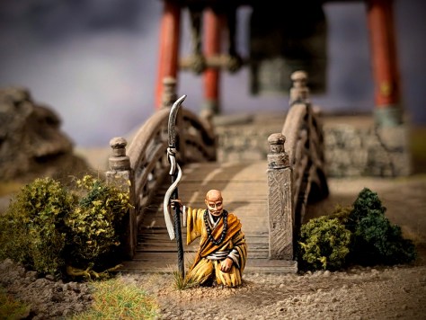 Ein älterer Mönch, mit Narben im Gesicht und einer goldenen Mönchskutte, trat Daigo entgegen. Sein Blick war ruhig. Sein Griff um die Stabwaffe fest. „Du hast gegen Ronin gekämpft, gegen Bauern und Samurai… aber hier hast du nichts zu suchen.“