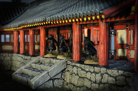 Für dieses erste und alle weiteren Szenarien im Tempel, werden wir „Test of Honour“ von Graham Davey verwenden. Das Regelbuch und die „Expanded Rules“ beinhalten neben den Regeln und Armeelisten auch eine Vielzahl von sehr schönen Szenarien, aus denen wir uns bedienen werden. Die ersten Szenarien, die wir testen wollen, sind „Undcover Raid“, „Attack at the Shrine“ und Assasination“.