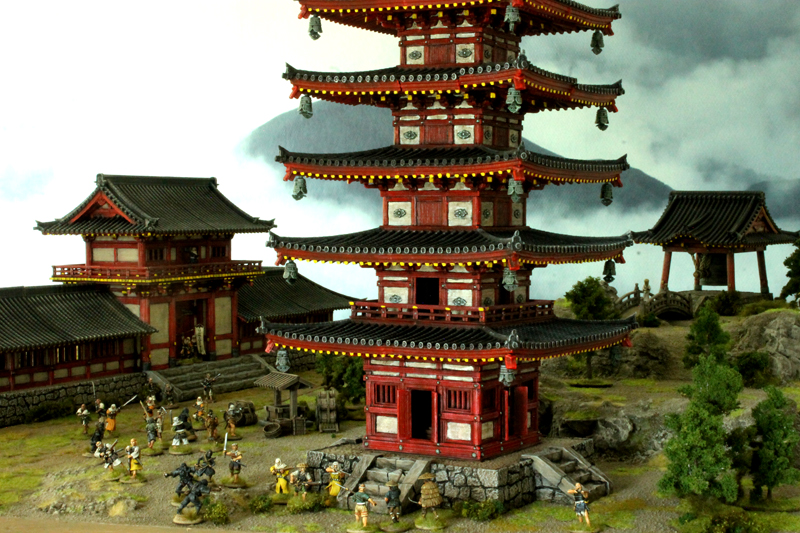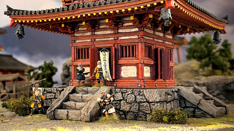 Nachdem ich euch im Teil 1 den groben Plan für das TACTICA Projekt 2026 vorgestellt habe, geht es heute weiter mit einem Fokus auf die „Tempel“-Spielplatte. In den letzten 2 Wochen habe ich mich daran gemacht, den Tempelbezirk weiter mit Gebäuden auszubauen. Im ersten Schritt ist endlich die schon lange geplante 5-stöckige Pagode zusammengebaut und bemalt worden. Das Ding ist wirklich eindrucksvoll und eines der schönsten 3D Modelle von 3D Alien Worlds. Mit diesem Gebäude sind nun alle großen Geländestücke für die Spielplatte bemalt. Im nächsten Schritt geht es um kleine Gebäude und Zubehör, also Schreine, Laternen, Statuen und auch die Vegetation rund um den Tempelbezirk. Aber nicht nur die Geländegestaltung, sondern auch ein paar zusätzliche Figuren sind geplant.