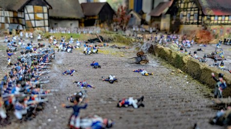 Zwar gelingt es den Russen und Preußen mehrfach in die Dorfmitte vorzudringen, sie werden jedoch immer wieder zurückgedrängt.