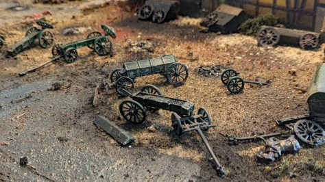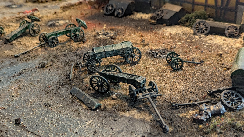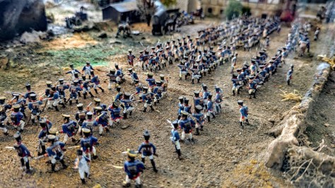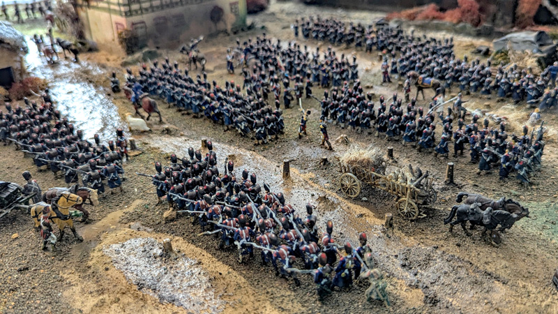 Im Schutz der Häuser und Höfen des Dorfes warten die französischen Reserven.
