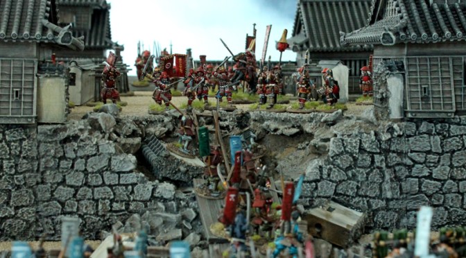 Diese Präsentation dreht sich um die Belagerung und den Sturmangriff auf die Toranlage einer großen japanischen Burg. In unserem Szenario wird die Burg aus unterschiedlichen Richtungen angegriffen und beschossen. Ziel der Angreifer ist es, mit mindestens einer Einheit den Burghof zu erreichen und zu halten. Das Ganze wird mit eignen Regeln von Vasa bestritten (basierend auf „This very Ground“), wobei die Spieler kooperativ gegen den Spielleiter (Verteidiger) agieren.