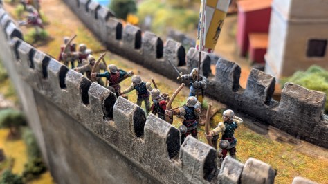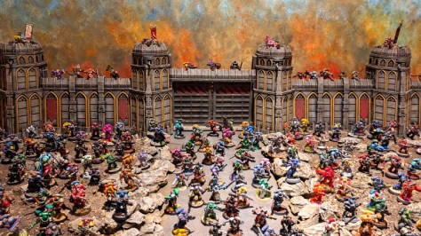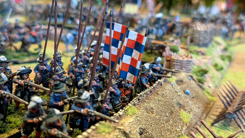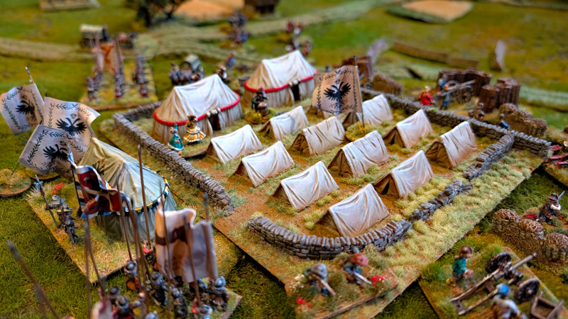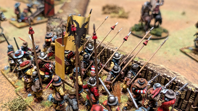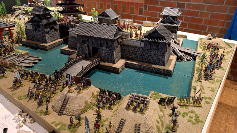 Mit „The Siege of Hasedō Castle“ betrat Stanislav Beran gemeinsam mit seiner Crew (Jan Nikrýn, Ondřej Sos und Eliška Korityáková) die Bühne. Dafür nahmen sie den langen Weg aus Tschechien auf sich und brachten eine fantastische Pike-&-Shot-Spielplatte mit. Das Szenario zeigte die Belagerung der Burg Hasedō im Jahr 1600, die zeitgleich zu den berühmten Feldzügen von Tokugawa Ieyasu und Ishida Mitsunari, die schließlich in der Schlacht von Sekigahara gipfelten. Auf der riesigen Spielplatte kämpften hervorragend bemalte Armeen zu Füßen einer imposanten Burganlage. Besonders beeindruckend war, dass die gesamte Präsentation in nur sechs Monaten entstand. Wer selbst Tabletop-Gelände baut, weiß, dass sechs Monate normalerweise gerade so reichen, um sich zu überlegen, wo man anfangen möchte. Das Sahnehäubchen: Alan und Michael Perry spielten das Szenario während der TACTICA selbst. Mehr Ritterschlag geht im historischen Tabletop kaum.