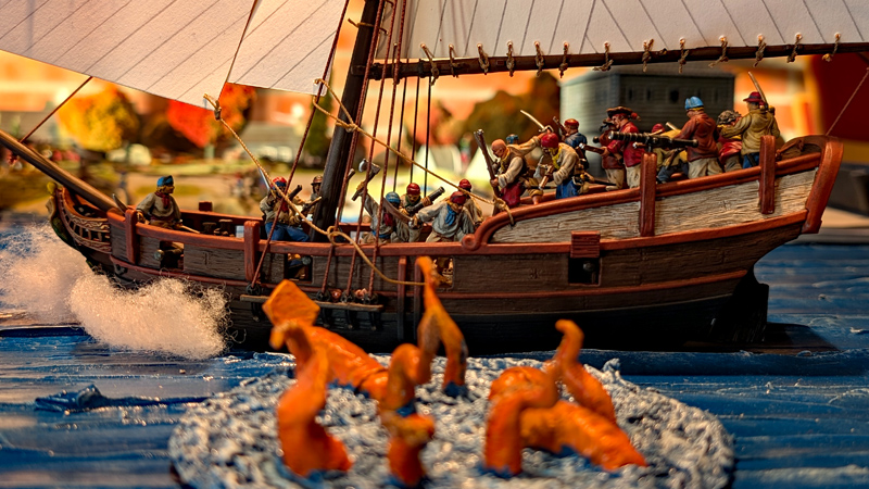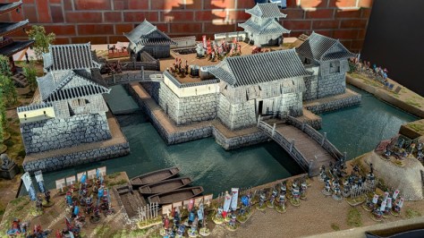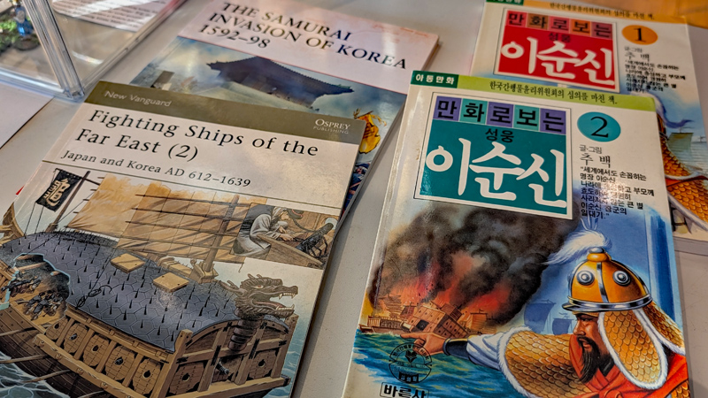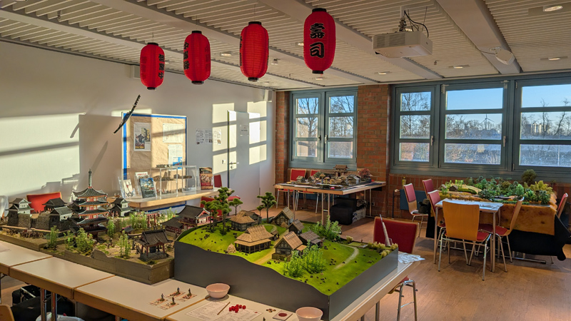 Eine kleine, aber sehr feine Ausstellung widmete sich zudem den Samurai und einem der historischen Gegenspieler Japans – dem Königreich Joseon (heute besser als Korea bekannt). Mein alter Club-Kollege Karl Heinz Ranitzsch hatte dafür neben Figuren auch Bücher und Berichte zusammengetragen. Kurz gesagt: Wer dachte, Tabletop sei nur Würfeln und Miniaturen, bekam hier gleich noch eine Portion Geschichtsunterricht dazu. Vielen Dank dafür!