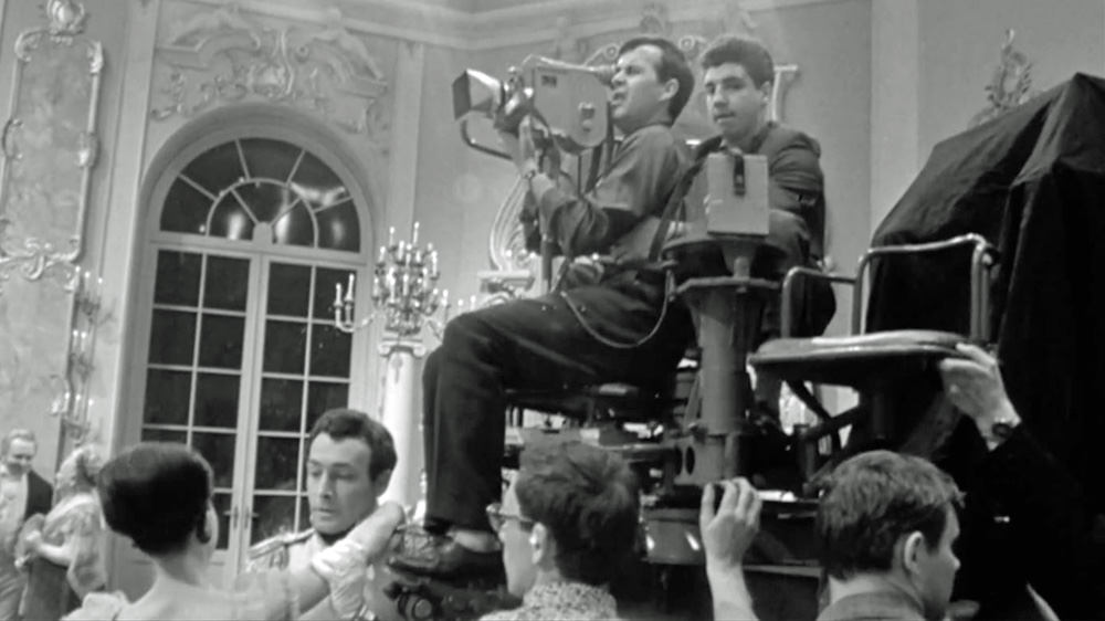 Bei der Szene von Nataschas erstem Ball bewegte sich ein Kameramann auf Rollschuhen mit einer Handkamera zwischen den tanzenden Statisten. Die Massenszenen wurden mithilfe von Kränen und Hubschraubern gefilmt. Darüber hinaus setzte man auf eine besonders dynamische Kameraführung: Handkameras mitten im Gefecht, lange Kamerafahrten durch das Schlachtfeld und extreme Totalen mit Tausenden von Soldaten.