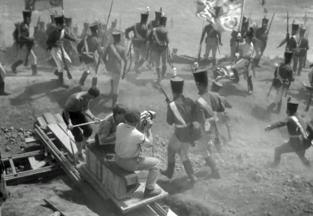 Für die Darstellung der Schlacht bei Borodino kam zudem eine an Drähten befestigte und per Fernauslöser gesteuerte Kamera zum Einsatz, die über das Schlachtgetümmel hinweg „flog“ und daher als „fliegende Kamera“ bezeichnet wurde. Ergänzt wurde dies durch kilometerlange Schienensysteme, auf denen die Kameras die Szenen begleiteten.