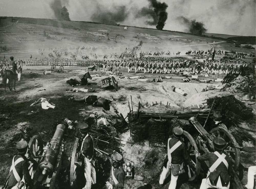 Aufgewachsen bin ich zwar mit der US-Kinoversion von 1956, die ich als Unterhaltungsfilm nach wie vor bevorzugen würde, doch die Ausstattung, die Schlachten und viele einzelne Szenen begeistern mich vor allem in dem sowjetischen Mehrteiler. Aus diesem Grund möchte ich diesen Film aus der Perspektive eines Figuren-Hobbyisten vorstellen und einige Details aus der beeindruckenden Produktionsgeschichte beleuchten.