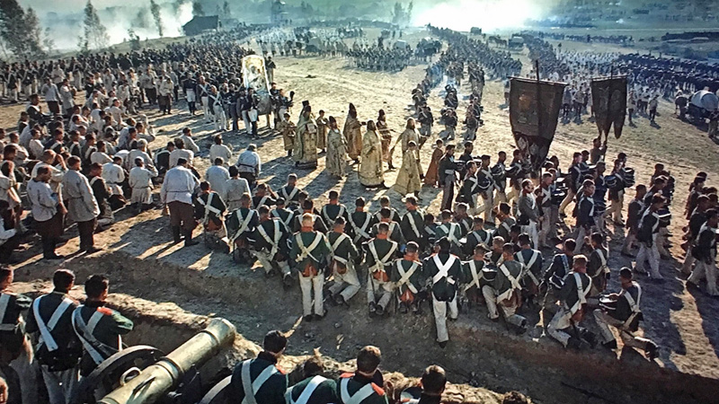 Stellvertretend für die vielen eindrucksvollen Massenszenen möchte ich den Gottesdienst vor der Schlacht von Borodino hervorheben. Für eine Produktion aus einem kommunistischen Land ist diese ausführliche Darstellung eines religiösen Rituals besonders bemerkenswert.